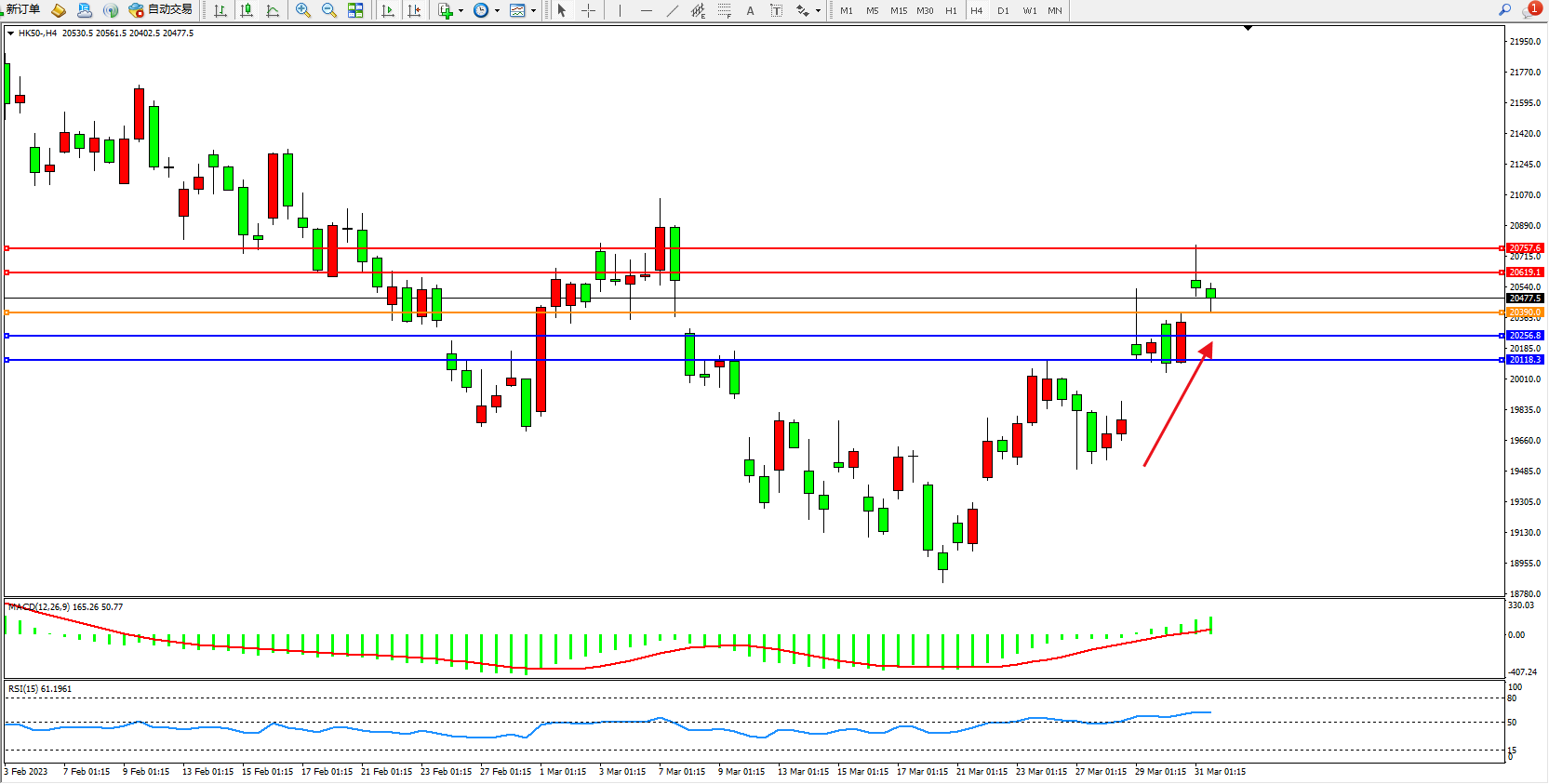 香港恒生指数3月31日(周五)收盘上涨90.98点,涨幅0.45%,报20400.11点;港股三大指数全天维持涨势,恒指最终收涨0.45%,国指涨0.67%,恒生科技指数涨0.78%,三者早盘曾大涨2%。大型科技股多数走强,京东涨超5%,阿里巴巴涨超3%,快手、网易、美团皆上涨,恒指公司:恒生香港上市生物科技指数将进行优化以改善其指数交易性及加强其生物科技元素。新的编算方法将于截至2023年3月31日之指数检讨中采用,而相关的成份股变动将于2023年6月5日(星期一)生效。南下资金净流入23.93亿港元,大市成交额为1405亿港元。
