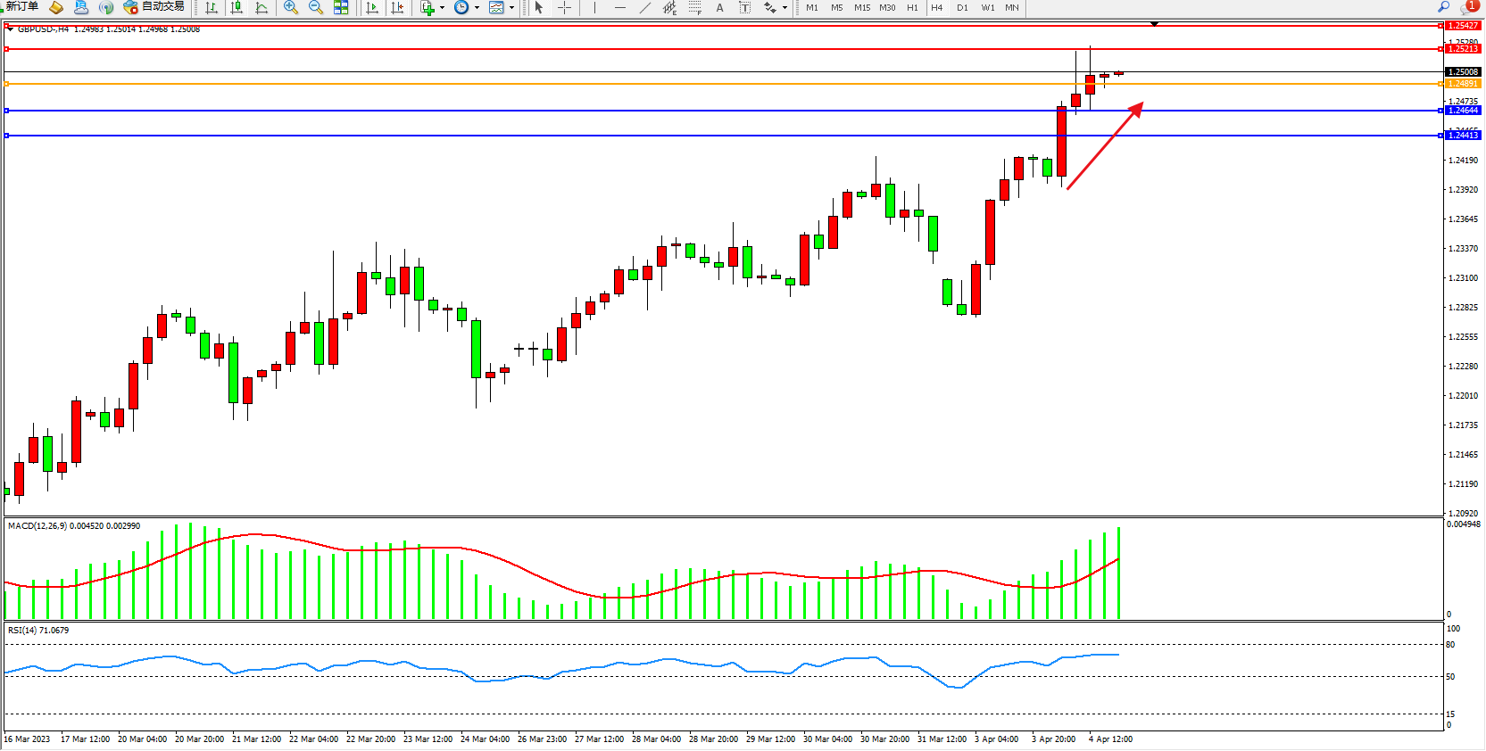 英镑美元GBPUSD ——4小时K线图显示: