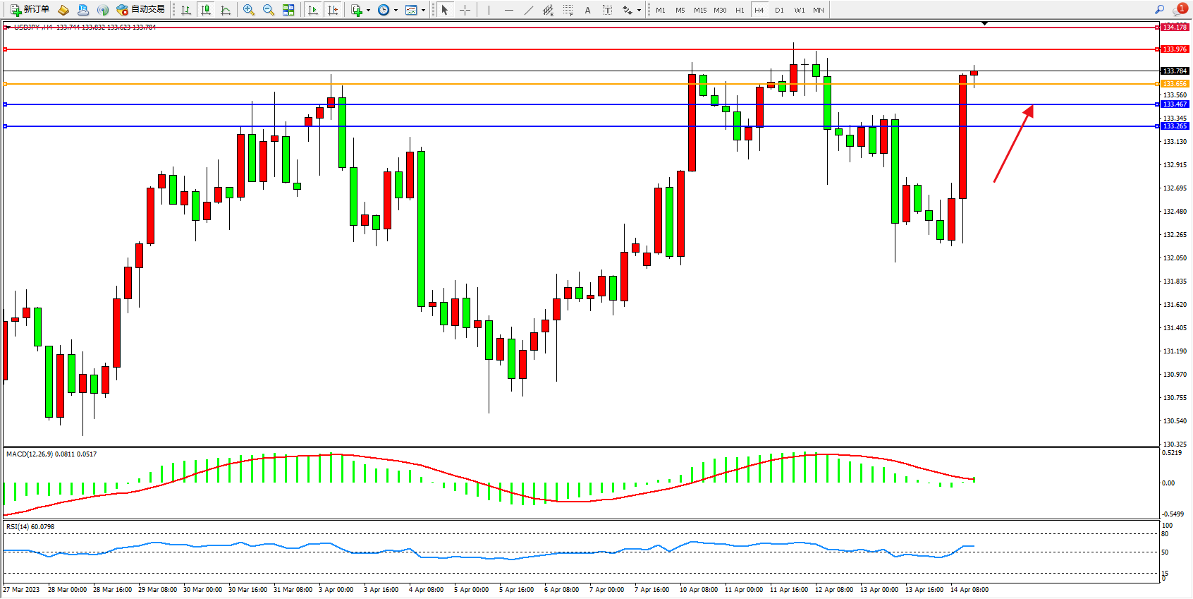 支撑位:133.467 133.265