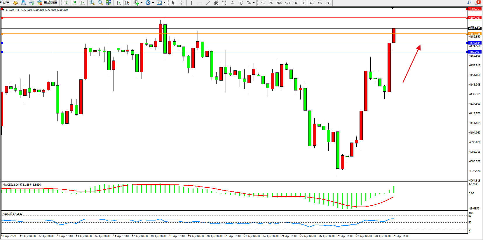 标普SP500——4小时K线图显示: