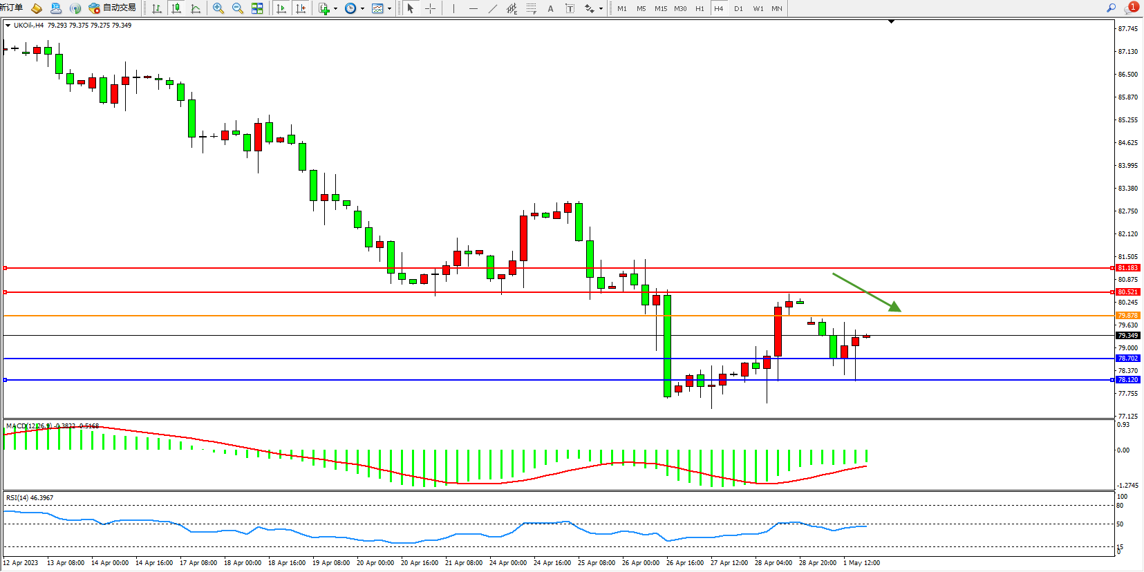 交易策略:79.878下方看跌,目标78.702 78.120