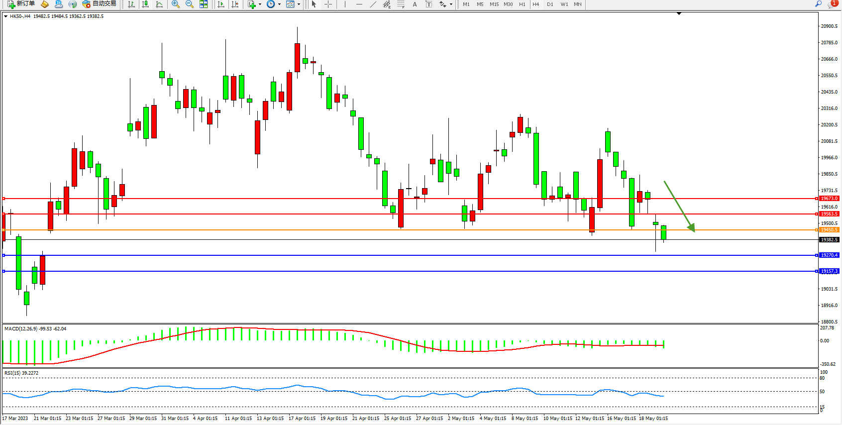 HK50:低位下移 恒指:低位下移 CHINA300  HK50