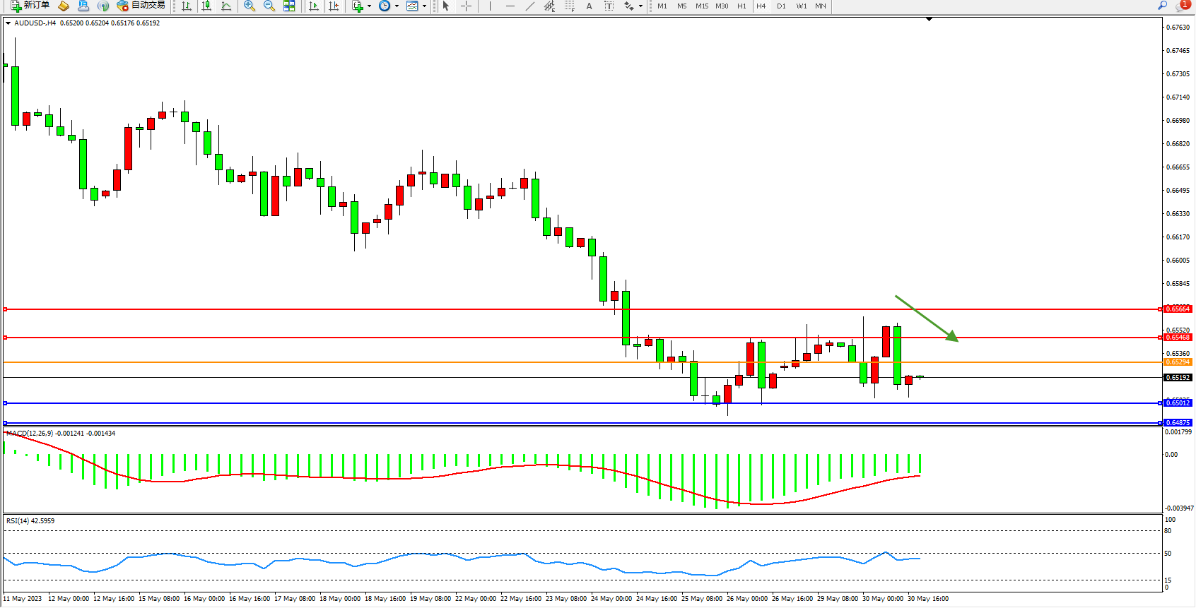 澳元美元AUDUSD——4小时K线图显示:
