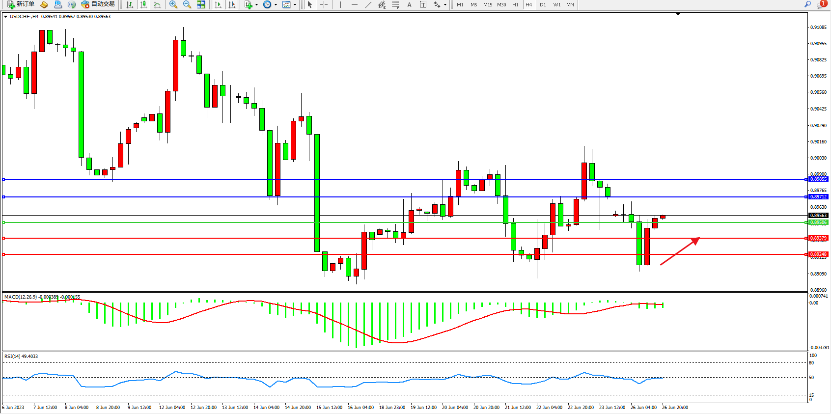 备选策略:0.89506下方看跌,目标0.89379 0.89248