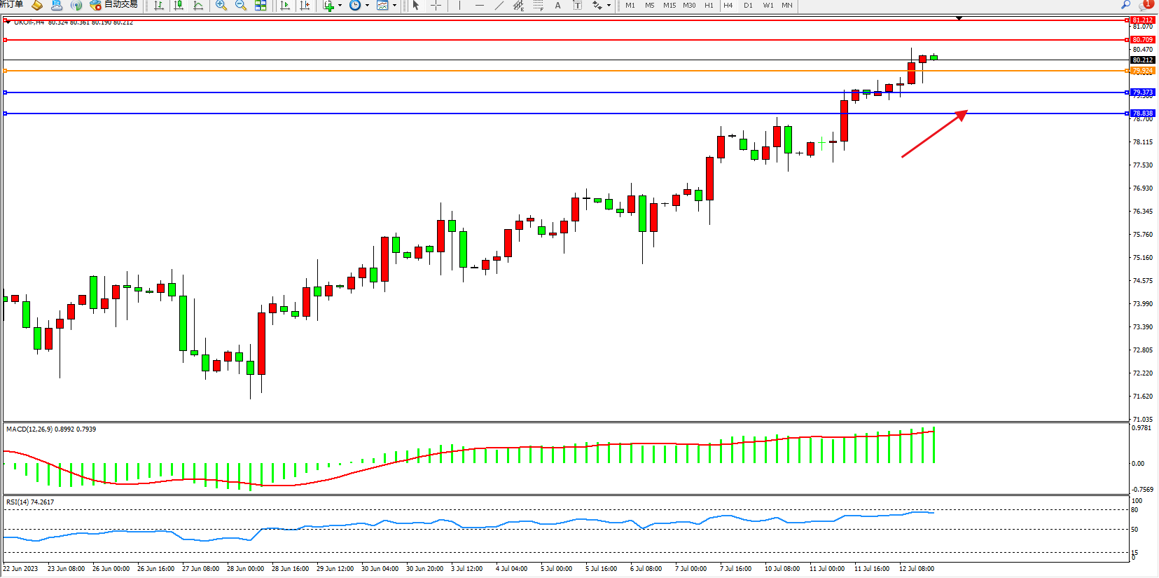 交易策略:79.924上方看涨,目标80.709 81.212