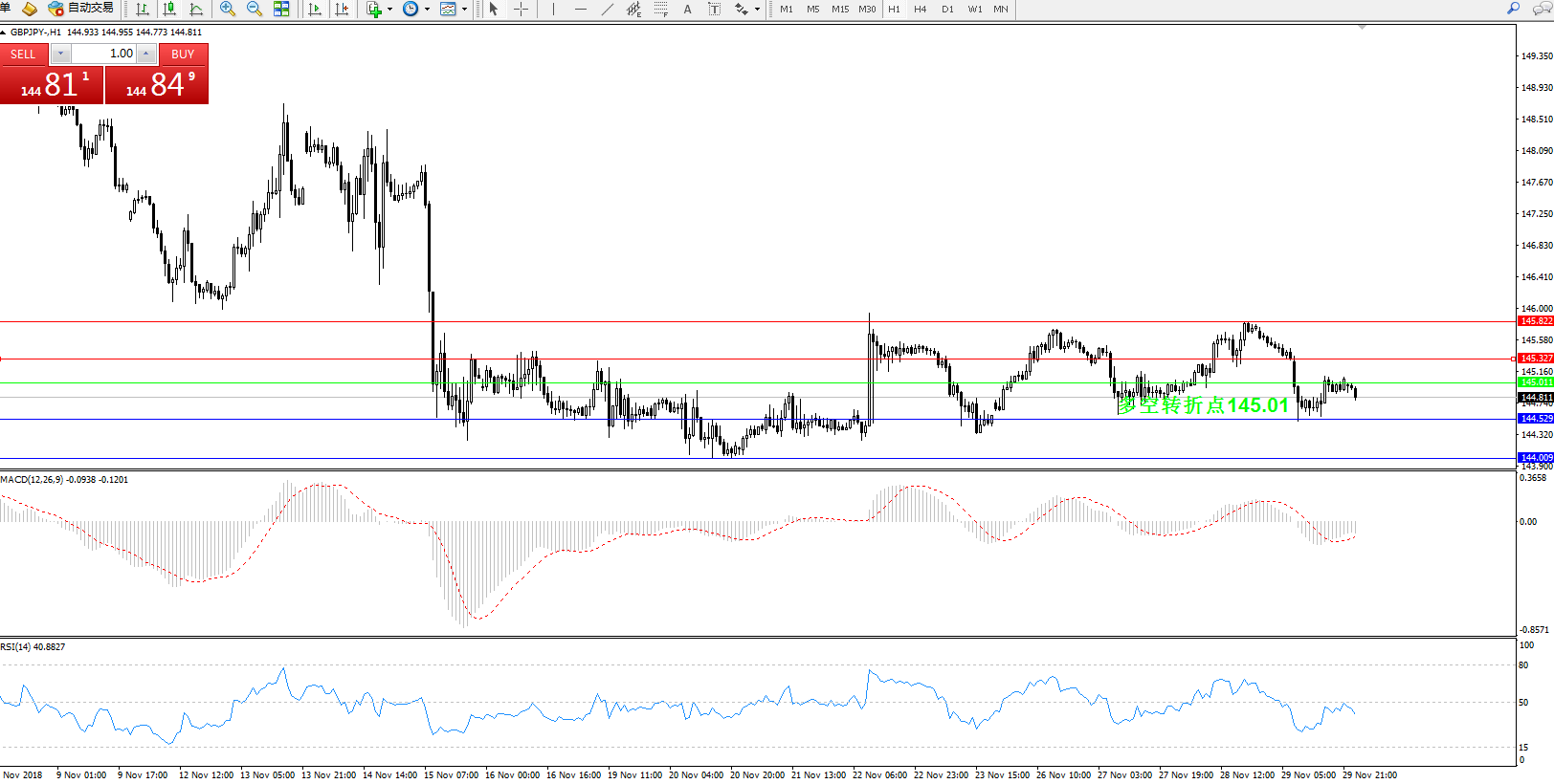 交易策略:倾向于做空为主,145.01下方做空,目标144