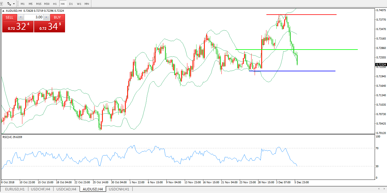 交易策略:在0.7282之下,看跌,目标价位为0.7218,然后为0.7161。