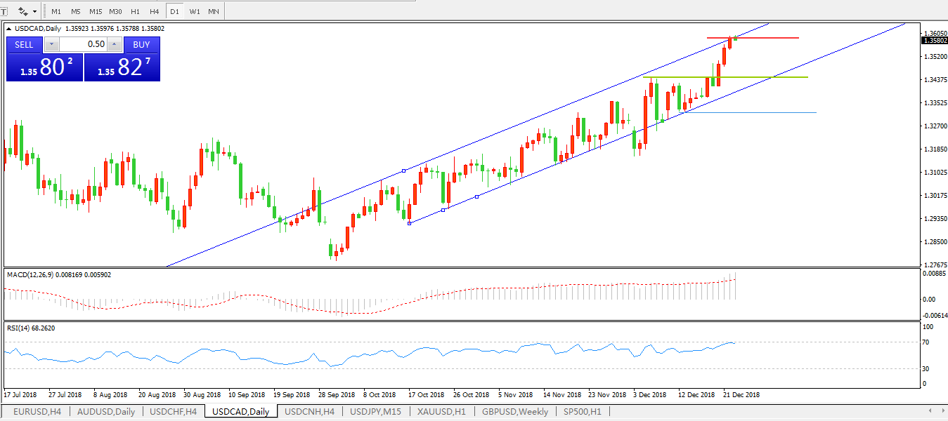 美元兑加元USDCAD日线