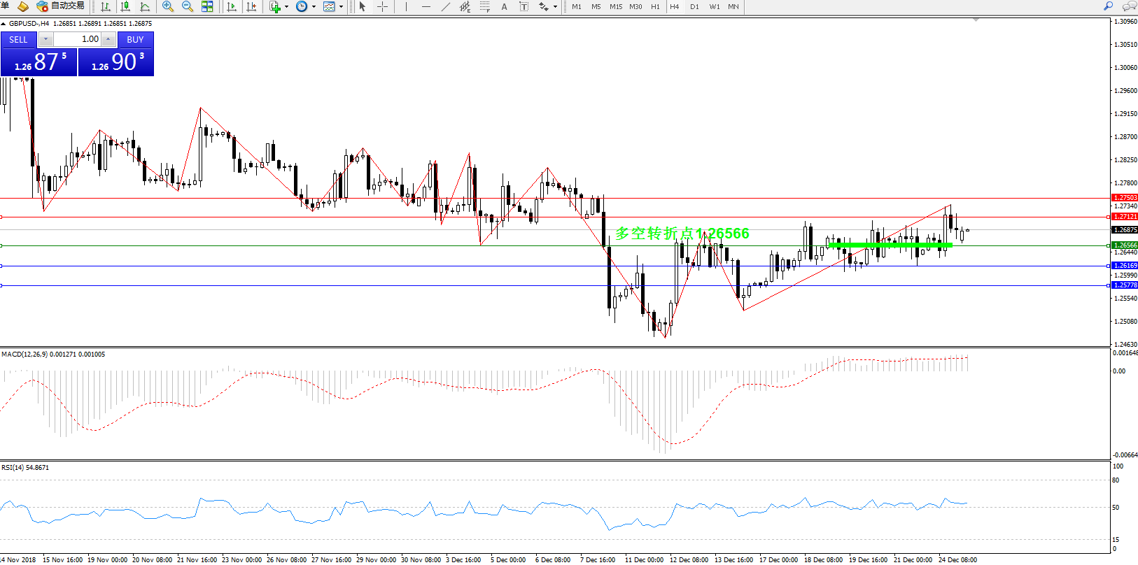 交易策略:1.26566上方看涨,目标1.27121、1.27503
