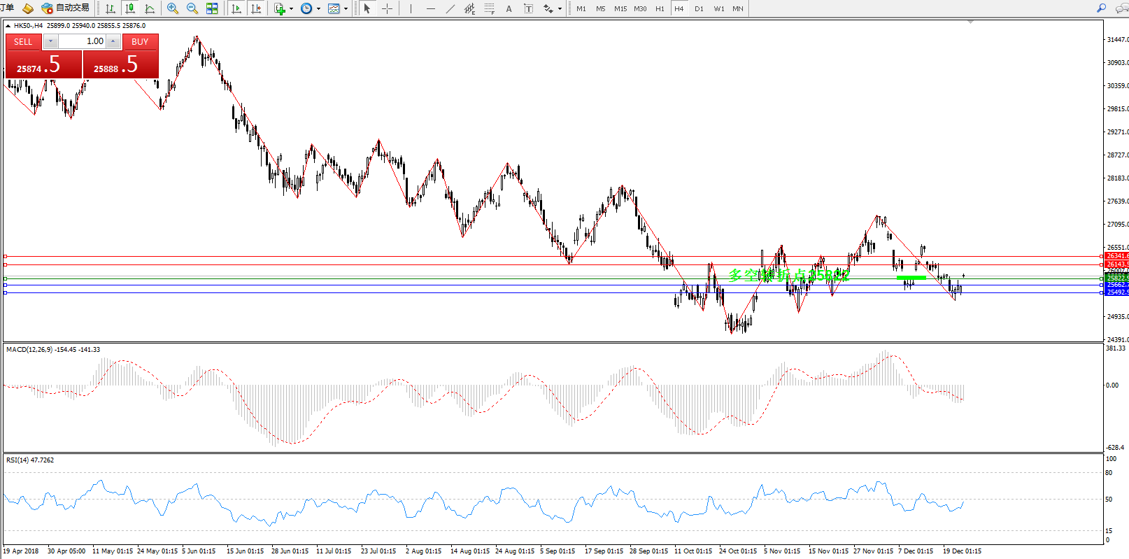 恒生指数HK50——4小时K线图显示: