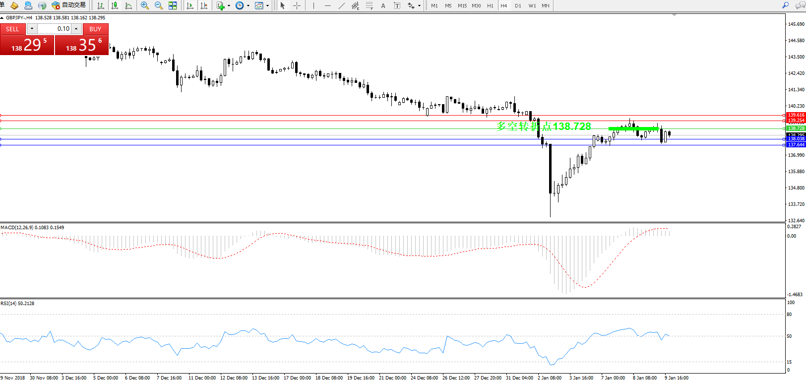 交易策略:138.728下方看跌,目标138.038137.644