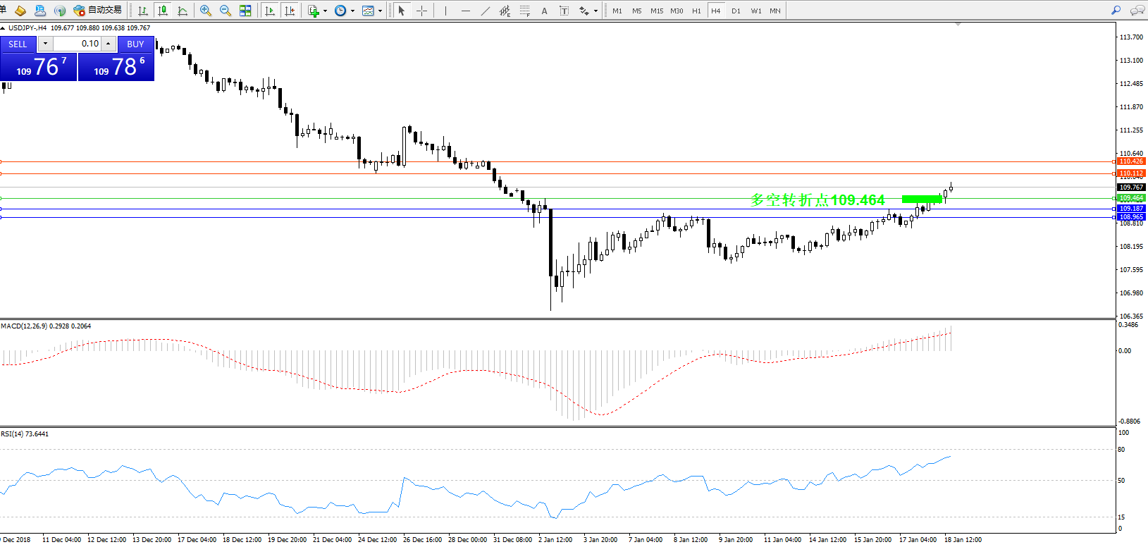 多空转折点:109.464