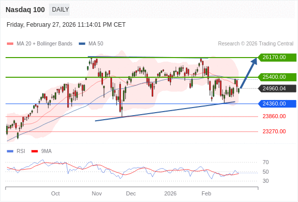纳斯达克100 短线: 在24360.00之上,看涨。