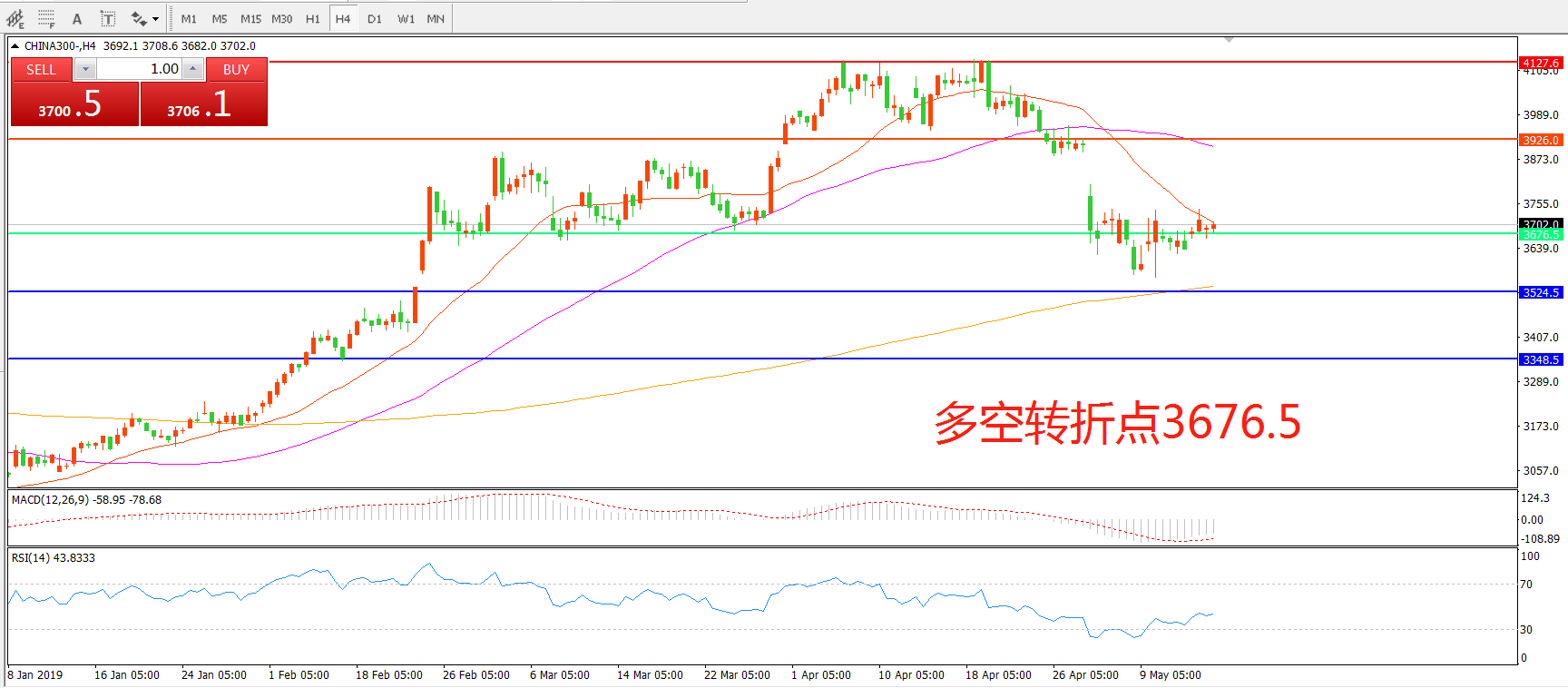 沪深300指数CHINA300 4小时图
