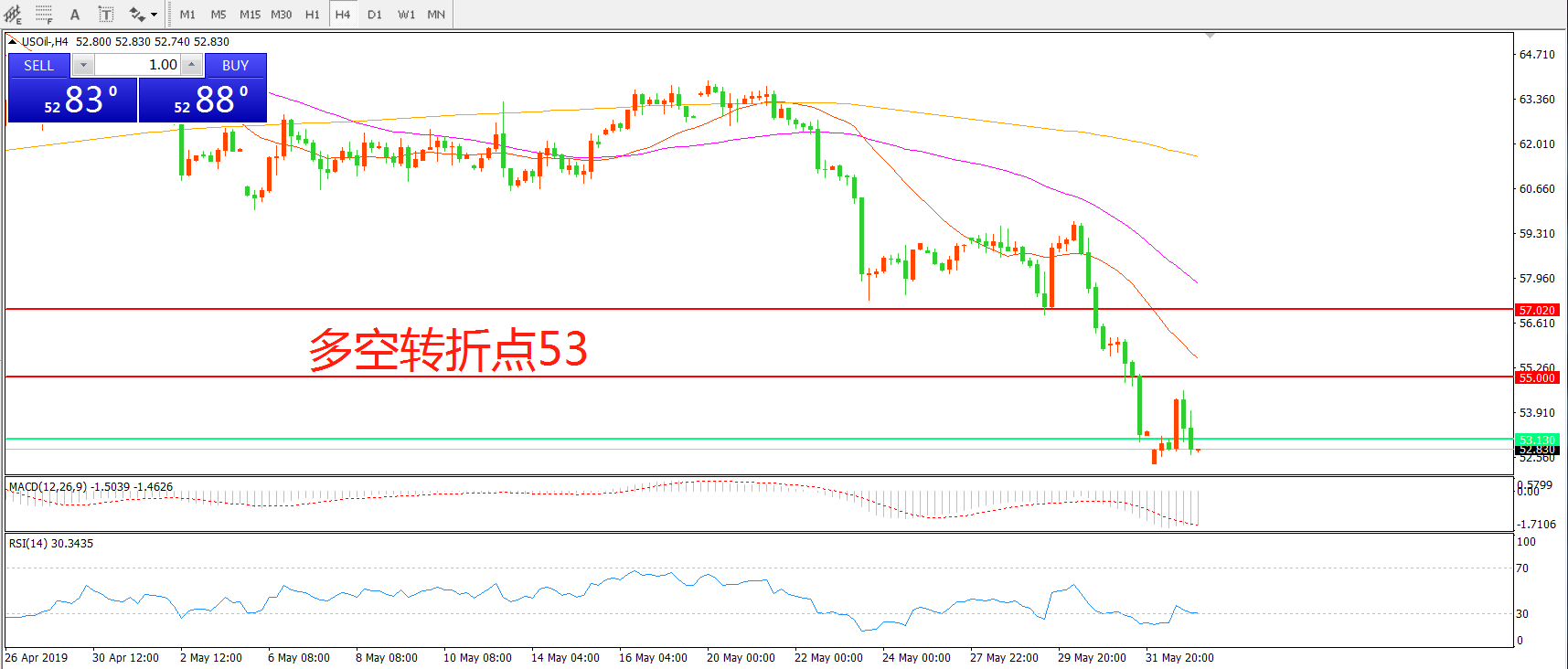 交易策略:在53.00之下看跌,目标50.00    46.00