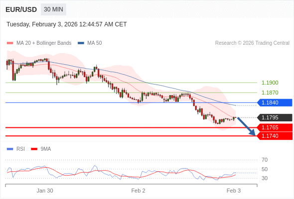 交易策略: 在 1.1840 之下,看跌,目标价位为 1.1765 ,然后为 1.1740 。