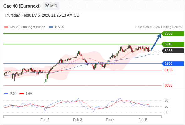 法国CAC指数期货 (Euronext) (G6) 当日内: 上升趋势。