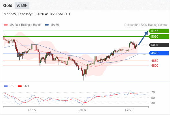 在 4925 之上,看涨,目标价位为 5090 ,然后为 5145 。