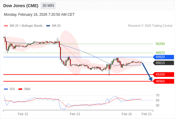 在 49820 之下,看跌,目标价位为 49200 ,然后为 48960 。