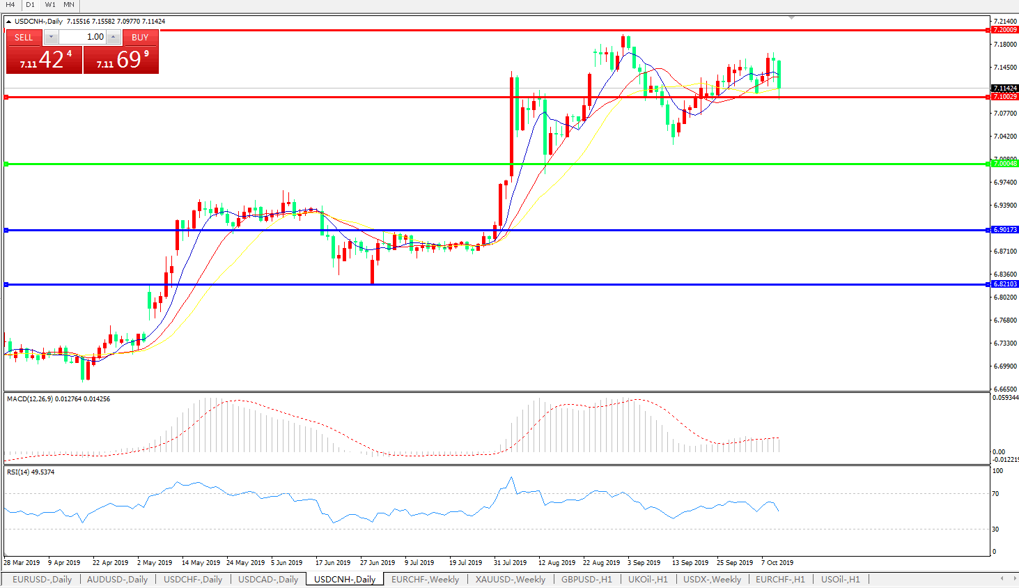 交易策略: 在7.0000之上,看涨,目标价位为7.1000,然后为7.2000。