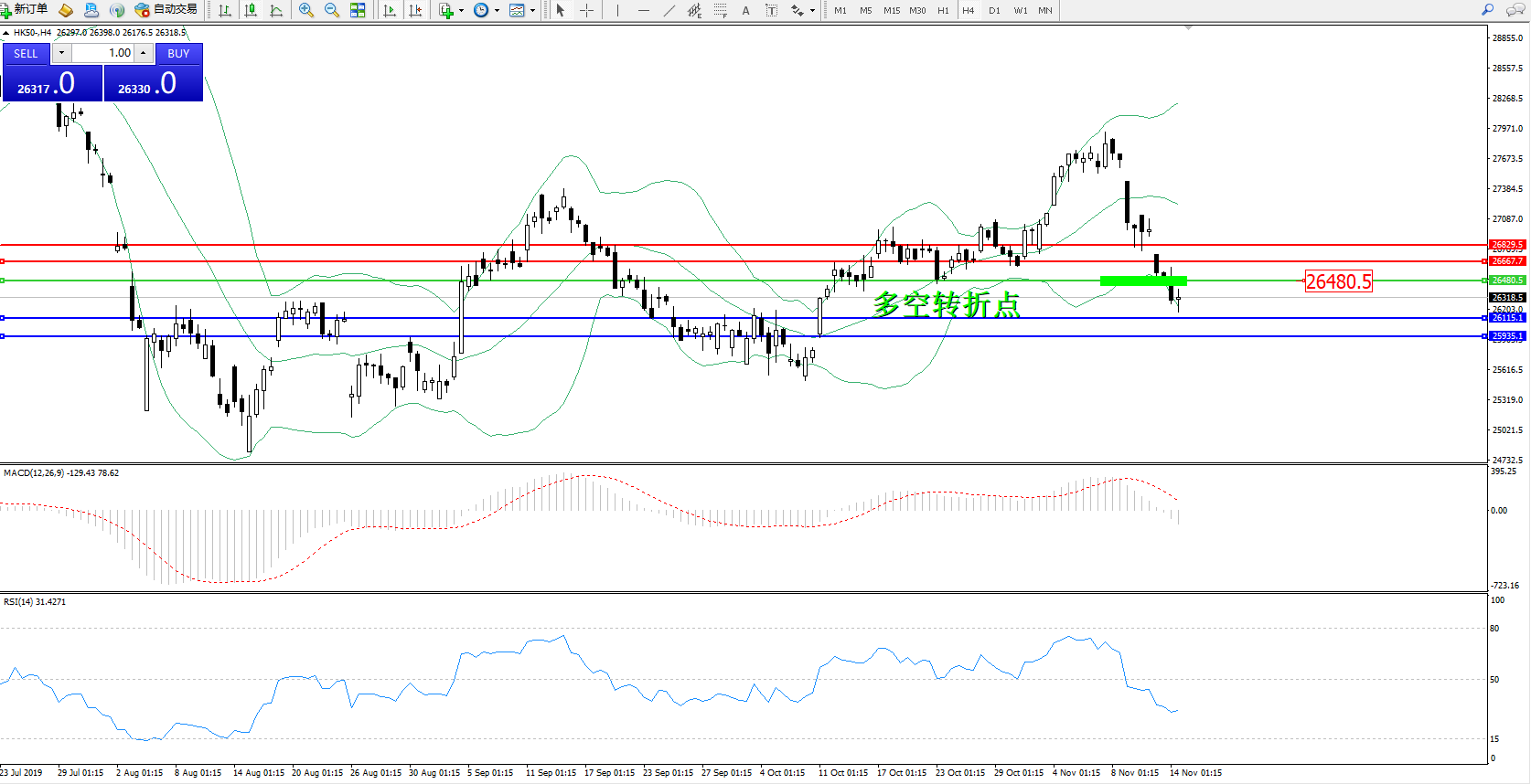 恒指HK50 ——4小时K线图显示: