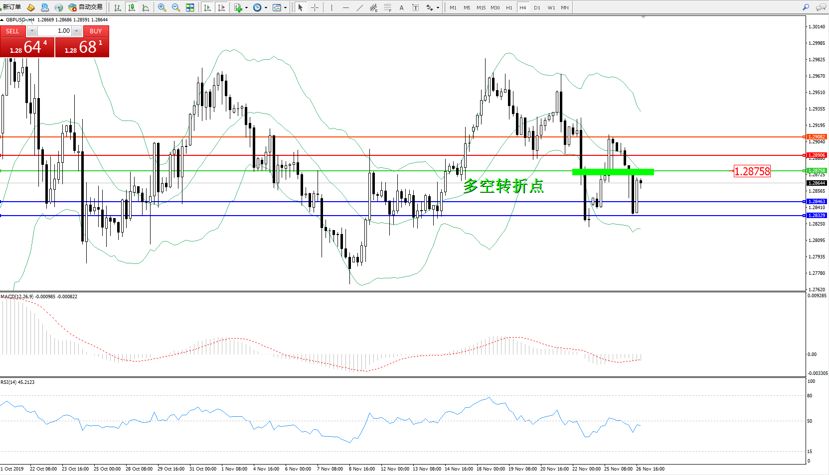 交易策略:1.28758下方看跌,目标1.28463、1.28329