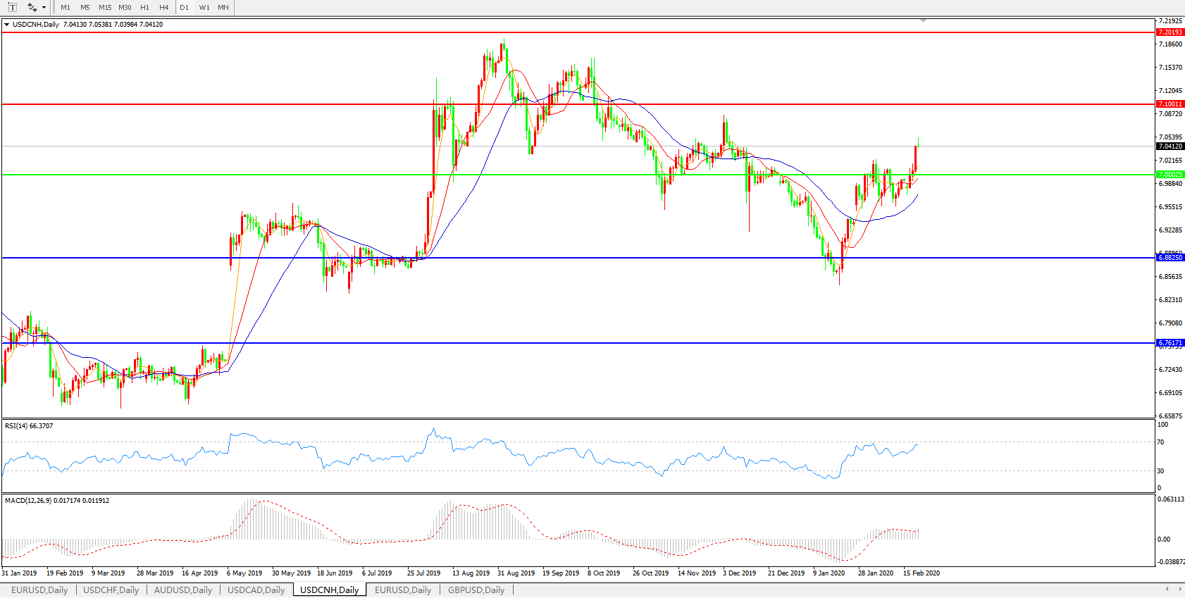 交易策略: 在7.0000之上,看涨,目标价位为7.1000,然后为7.2000。