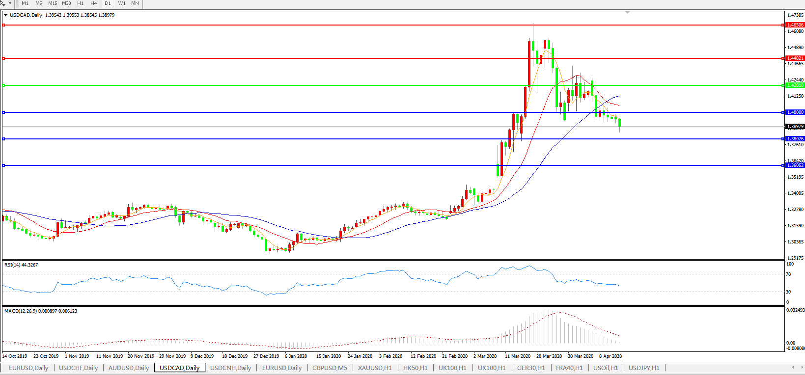 美元兑加元USDCAD 日线图: