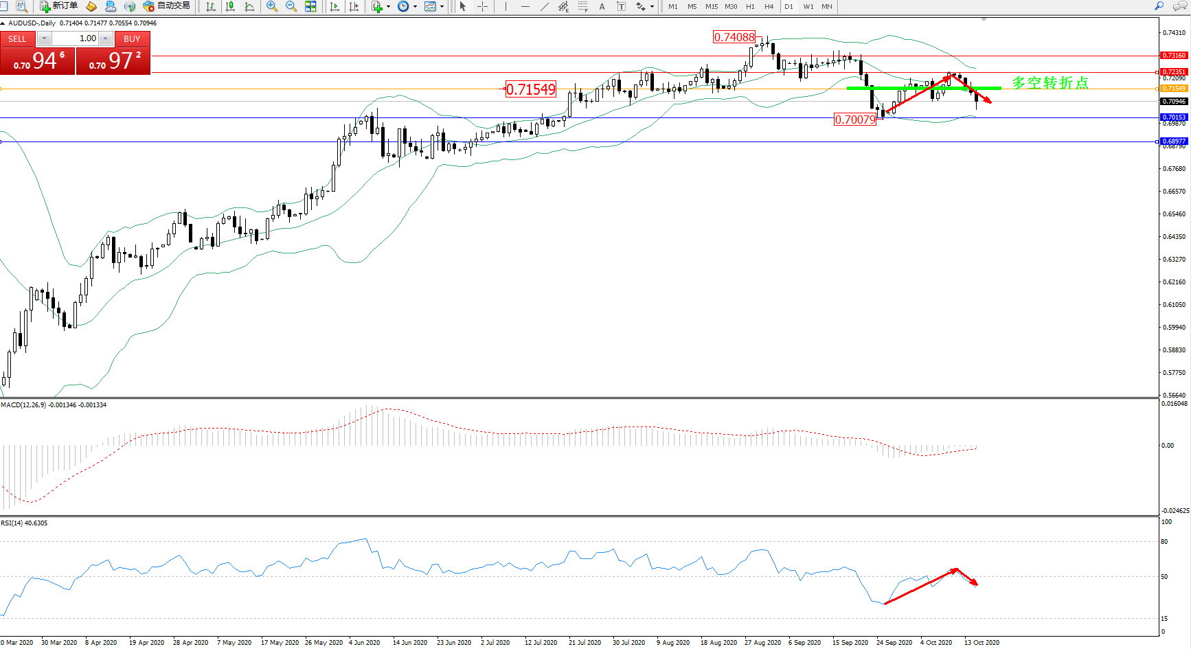 交易策略:0.71549下方看跌,目标0.70153、0.68977