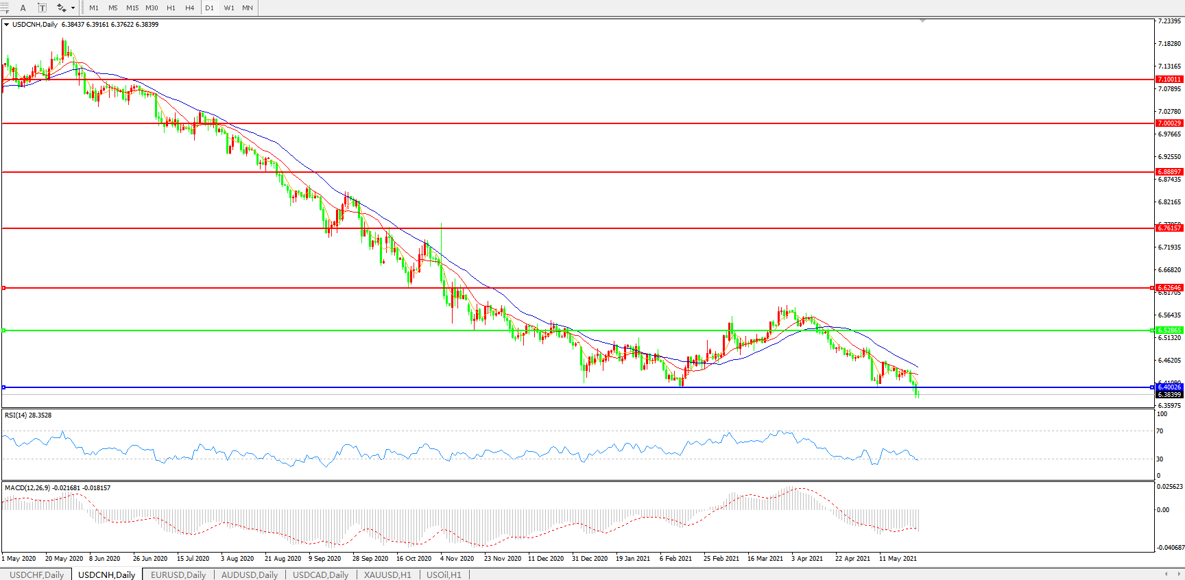 美元兑人民币USDCNH 日线图: