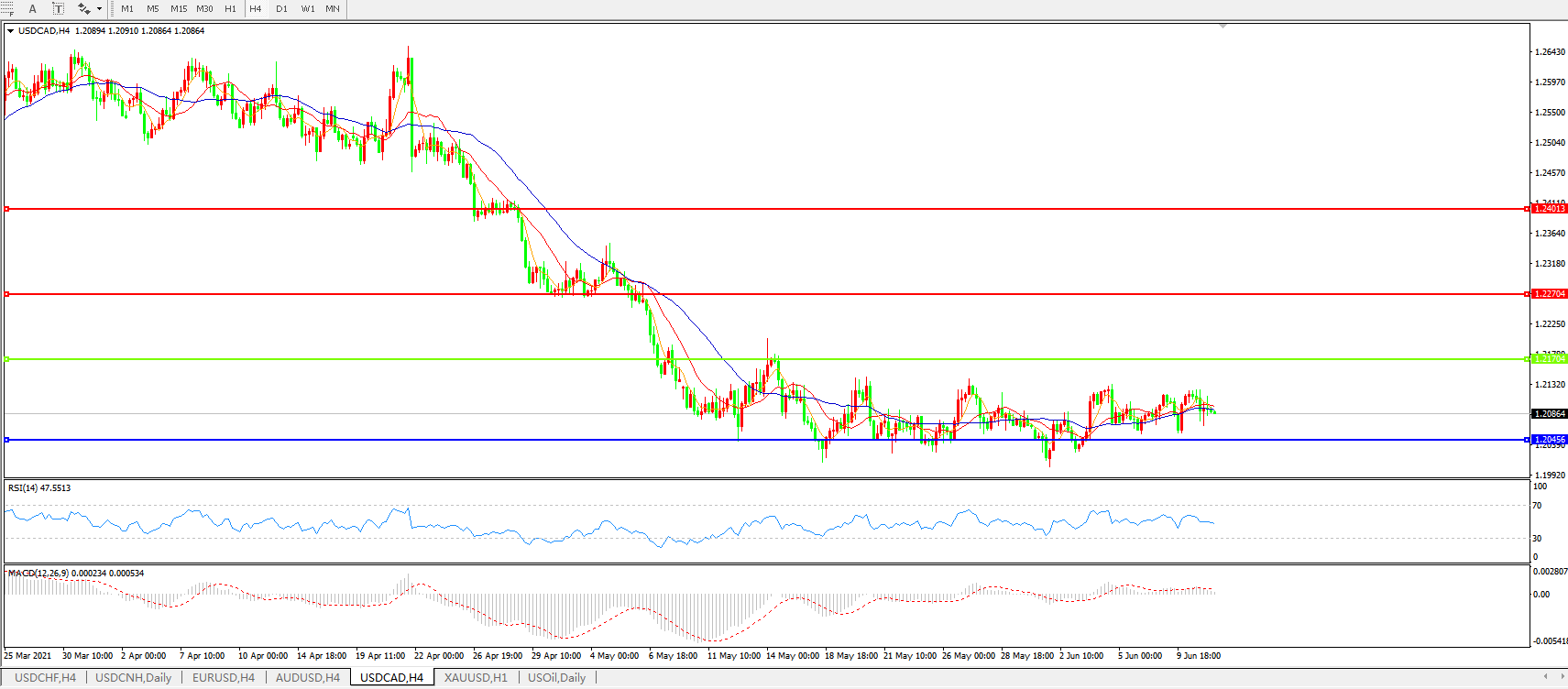 美元兑加元USDCAD    4小时图: