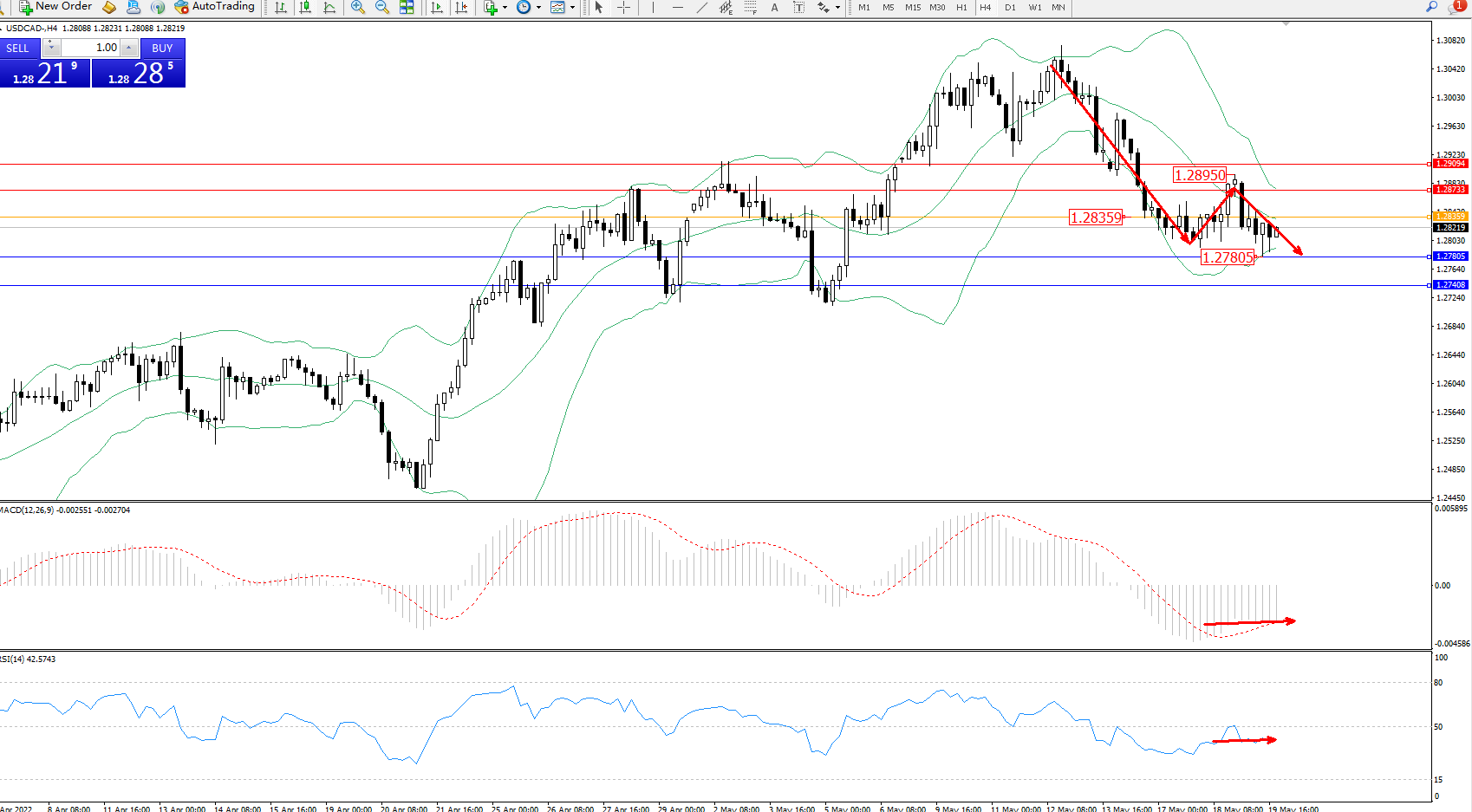 美元加元USDCAD——4小时K线图显示: