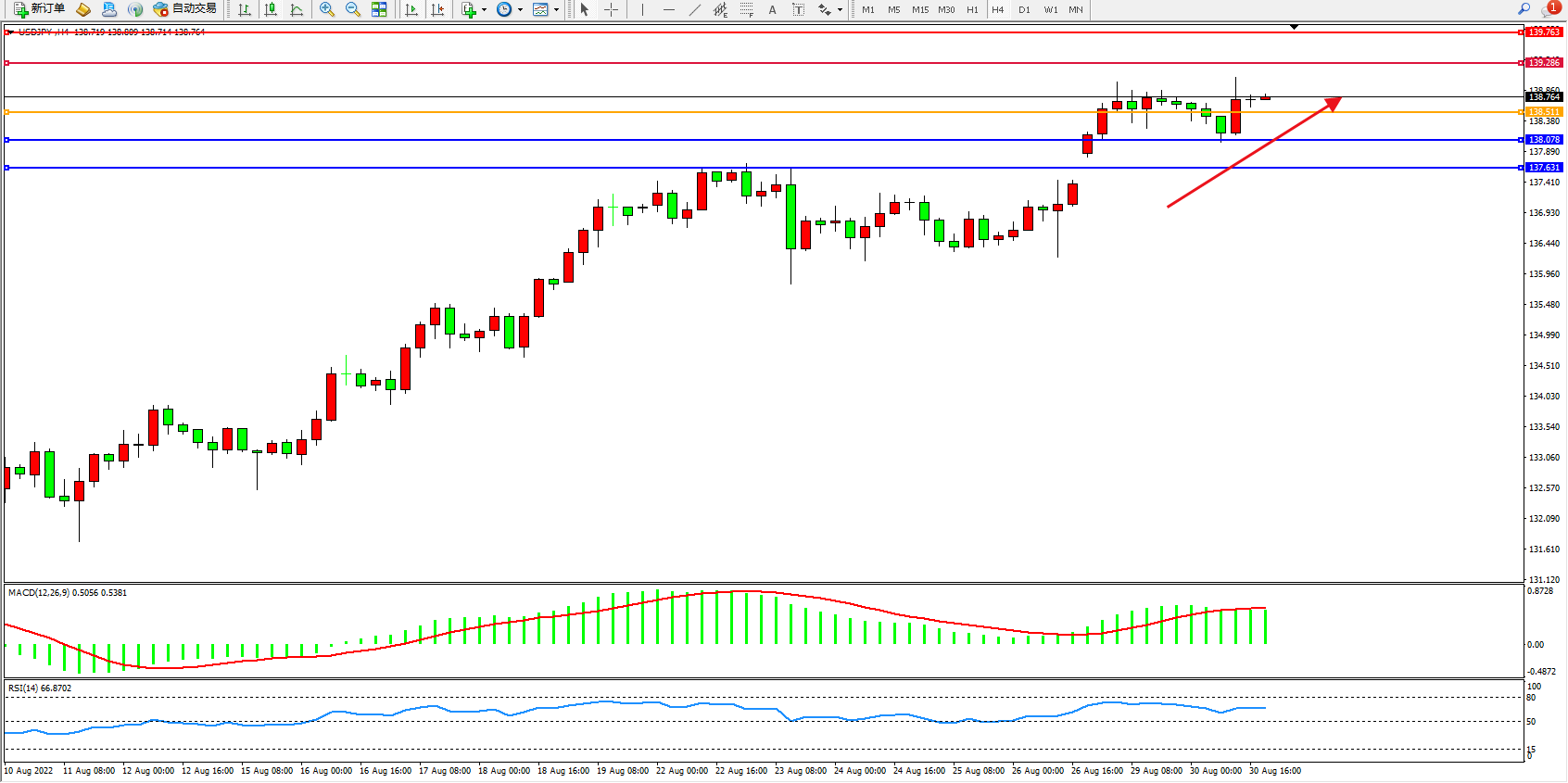 交易策略:138.511上方看涨,目标139.286、139.763