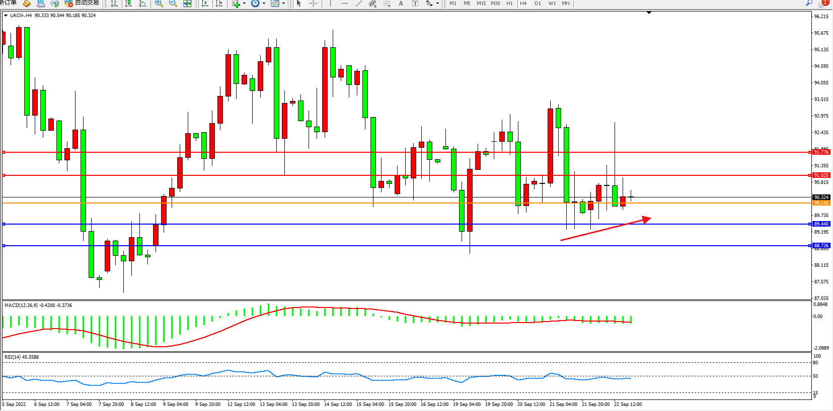 布油UKOil——4小时K线图显示: