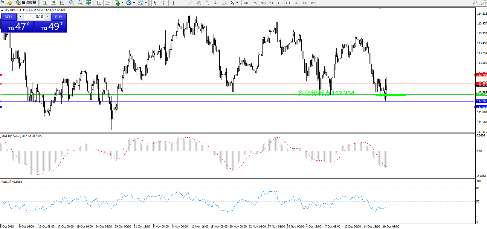 交易策略:112.234上方看涨,目标112.497、112.708