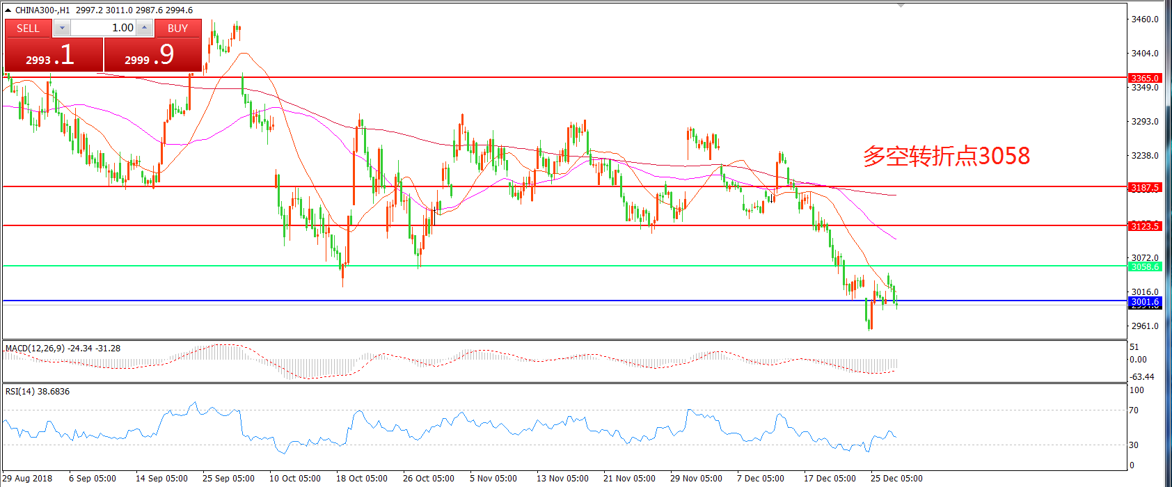 交易策略:在3058.00之下看跌,目标3000.00 2975.00
