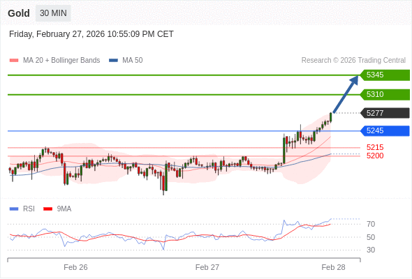 在 5245 之上,看涨,目标价位为 5310 ,然后为 5345 。